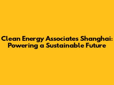 Clean Energy Associates Shanghai: Powering A Sustainable Future