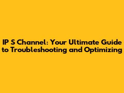 IP S Channel: Guide To Troubleshooting & Optimizing