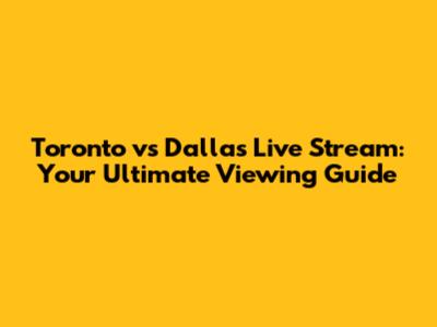 Toronto Vs Dallas: Live Stream Guide