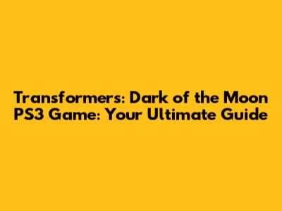 Transformers: Dark Of The Moon PS3 Game: Your Ultimate Guide