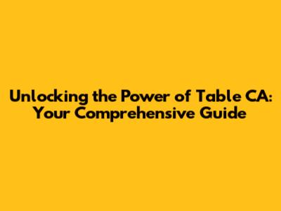 What Exactly is Table CA? Unveiling the Basics