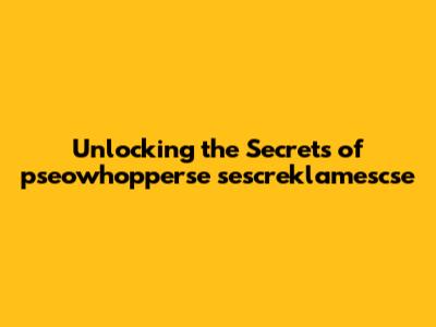 Unlocking The Secrets Of Pseowhopperse Sescreklamescse