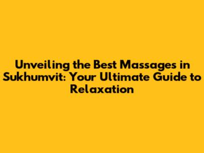 Unveiling The Best Massages In Sukhumvit
