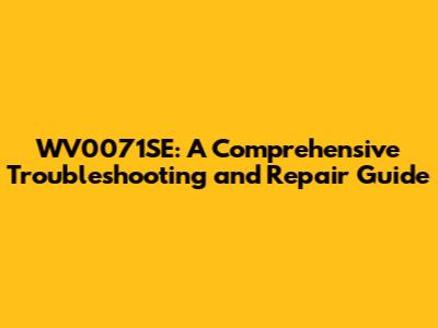Hey everyone! Are you experiencing issues with your WV0071SE? Don't sweat it! We're here to dive deep into troubleshooting and repair, ensuring you have the knowledge and confidence to tackle any problems that come your way. This guide will be your go-to resource, filled with insights, practical tips, and step-by-step instructions. Let's get started and bring your WV0071SE back to its prime! This guide is designed to empower you, whether you're a seasoned tech enthusiast or a newbie taking your first steps into the world of electronics repair. We'll break down complex issues into manageable parts, making the repair process straightforward and less intimidating. Prepare to become a WV0071SE expert! We'll cover everything from the most common problems to more advanced troubleshooting techniques. By the end, you'll be able to diagnose issues accurately and make informed decisions about repairs. So, grab your tools, and let's get fixing!